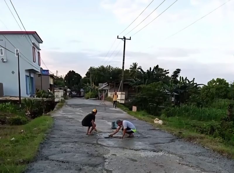 Jalan yang diperbaiki sepanjang kurang lebih 100 meter itu sebelumnya penuh lubang, berbatu, dan menjadi genangan berbahaya saat hujan. Situasi ini sudah berlangsung bertahun-tahun tanpa adanya tindakan dari instansi terkait.