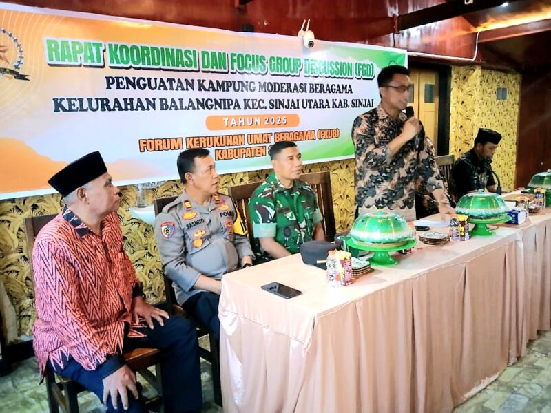 DIKSIKU.com, Sinjai – Forum Kerukunan Umat Beragama (FKUB) Kabupaten Sinjai menggelar Rapat Koordinasi (Rakor) dan Focus Group Discussion (FGD) terkait penguatan kampung moderasi beragama di Kelurahan Balangnipa, Kecamatan Sinjai Utara, yang berlangsung di Rumah Makan Wiring Empang, Kamis (18/9/2025).
