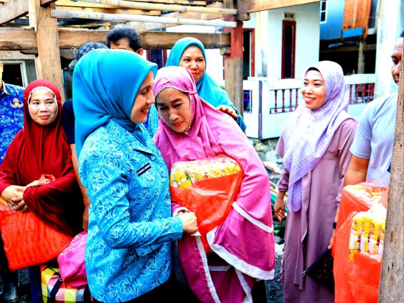 Selain itu, Ketua TP PKK turut menyerahkan bantuan berupa kebutuhan pokok dan pakaian layak pakai yang diharapkan dapat meringankan beban keluarga yang terdampak.