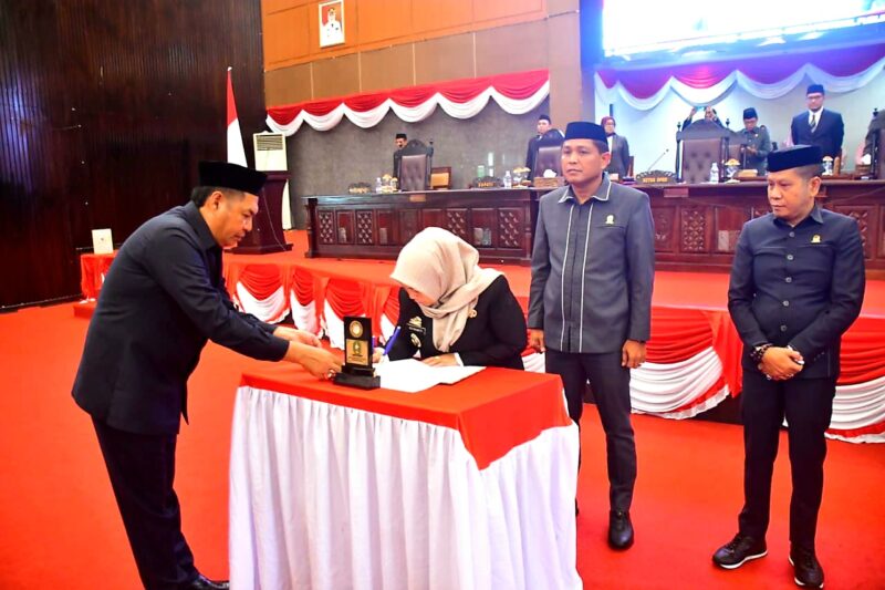 Penandatanganan dilakukan langsung Bupati Sinjai Dra. Hj. Ratnawati Arif dan Ketua DPRD Sinjai A. Jusman dalam Rapat Paripurna yang berlangsung di Ruang Sidang Paripurna DPRD Sinjai, Jumat (12/9/2025).