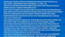 Diberitakan sebelumnya, kegiatan Bone Fun Run 2026 yang dijadwalkan berlangsung pada Minggu, 26 April 2026, resmi dibatalkan. Informasi pembatalan tersebut sebelumnya diumumkan melalui akun Instagram panitia, namun saat ini akun tersebut sudah tidak dapat diakses.