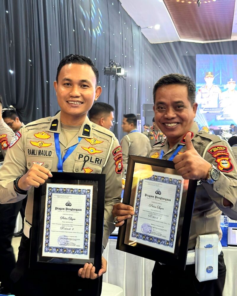 Penghargaan diserahkan langsung oleh Dirlantas Polda Sulsel Kombes Pol Karsiman, S.I.K., M.M, diterima langsung Kasat Lantas Polres Sinjai IPTU H.Sukri Liwang didampingi Kanit Regindent Polres Sinjai IPDA Ramli Maulid, di Aula Mappaodang Polda Sulawesi Selatan, Rabu (6/8/2025).