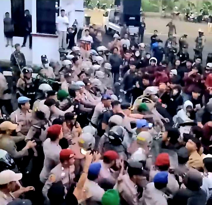 Kericuhan dipicu ketika massa aksi dari Aliansi BEM UMSI dan UIAD berusaha masuk ke area kantor DPRD menjelang waktu magrib. Situasi sempat memanas dan mendorong aparat kepolisian melakukan langkah-langkah pengamanan.